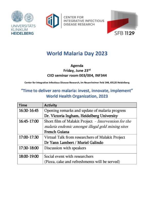 A SFB1129-sponsored event dedicated to World Malaria Day will take place Friday, June 23rd at 4:30 pm in the Seminar Room (ground floor)